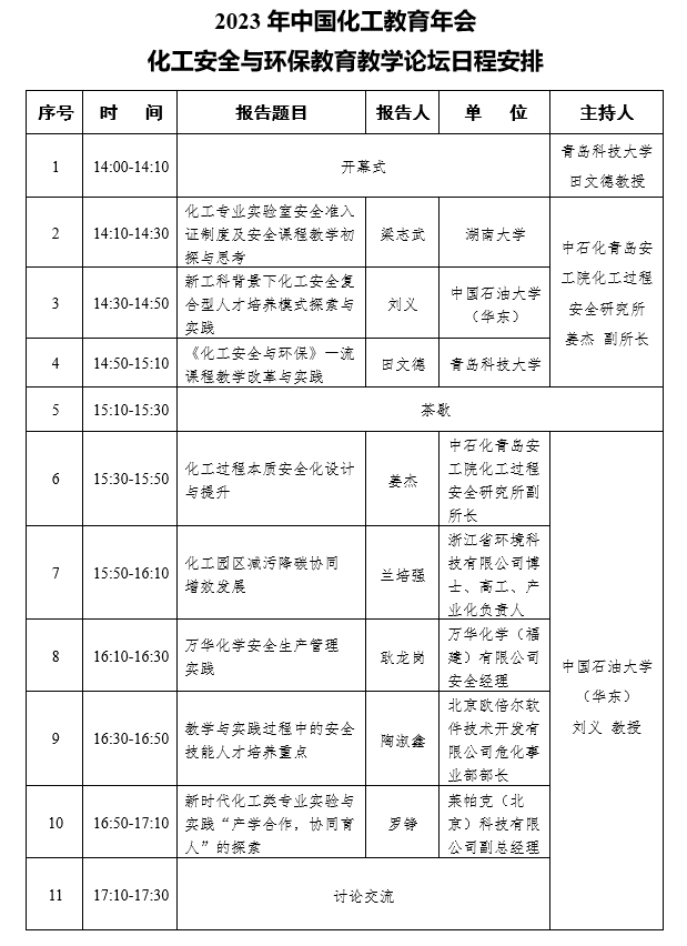 化工安全与环保对促进我国经济结构、能源结构、产业结构的转型升级,推动各行各业的高质量发展具有重要作用。“双碳”背景下,化工学科的地位和作用更加凸显,深入研讨化工安全与环保教育教学在实现“碳达峰、碳中和”目标中如何进一步发挥显著作用,非常必要。为进一步推动全国化工安全与环保教育教学在“双碳”背景下的创新发展,服务国家战略需求,由万象城allwincity官网承办的“2023年中国化工教育年会化工安全与环保教育教学论坛”将于2023年12月9日在泉州召开,诚邀专家学者莅会,与广大同仁共聚泉州,开展化工安全与环保教育教学高端对话,共谋化工学科建设与高等教育创新发展大计。现将有关事项通知如下: