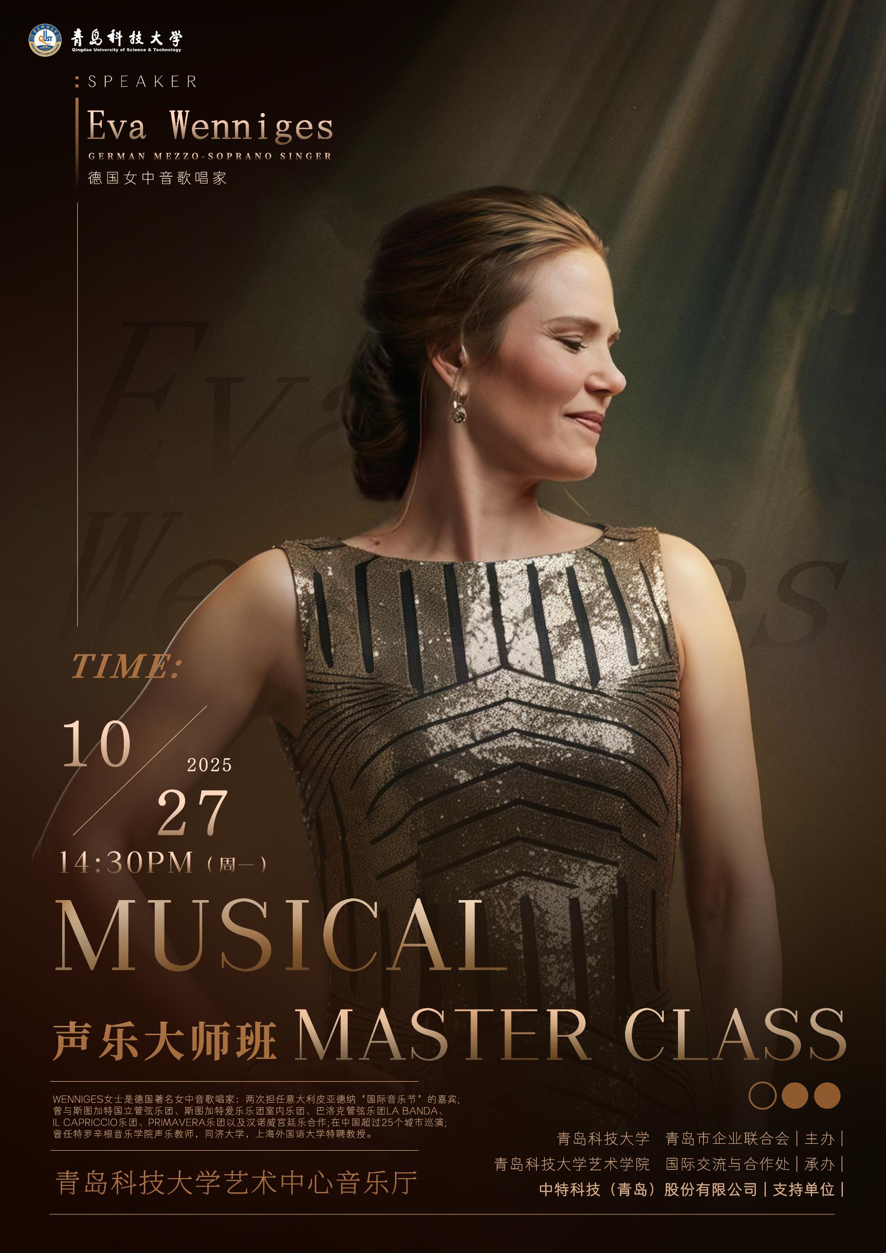 时间:10月27日(周一)14:30艾娃·文庭女士(Eva Wenniges)声乐艺术大师班