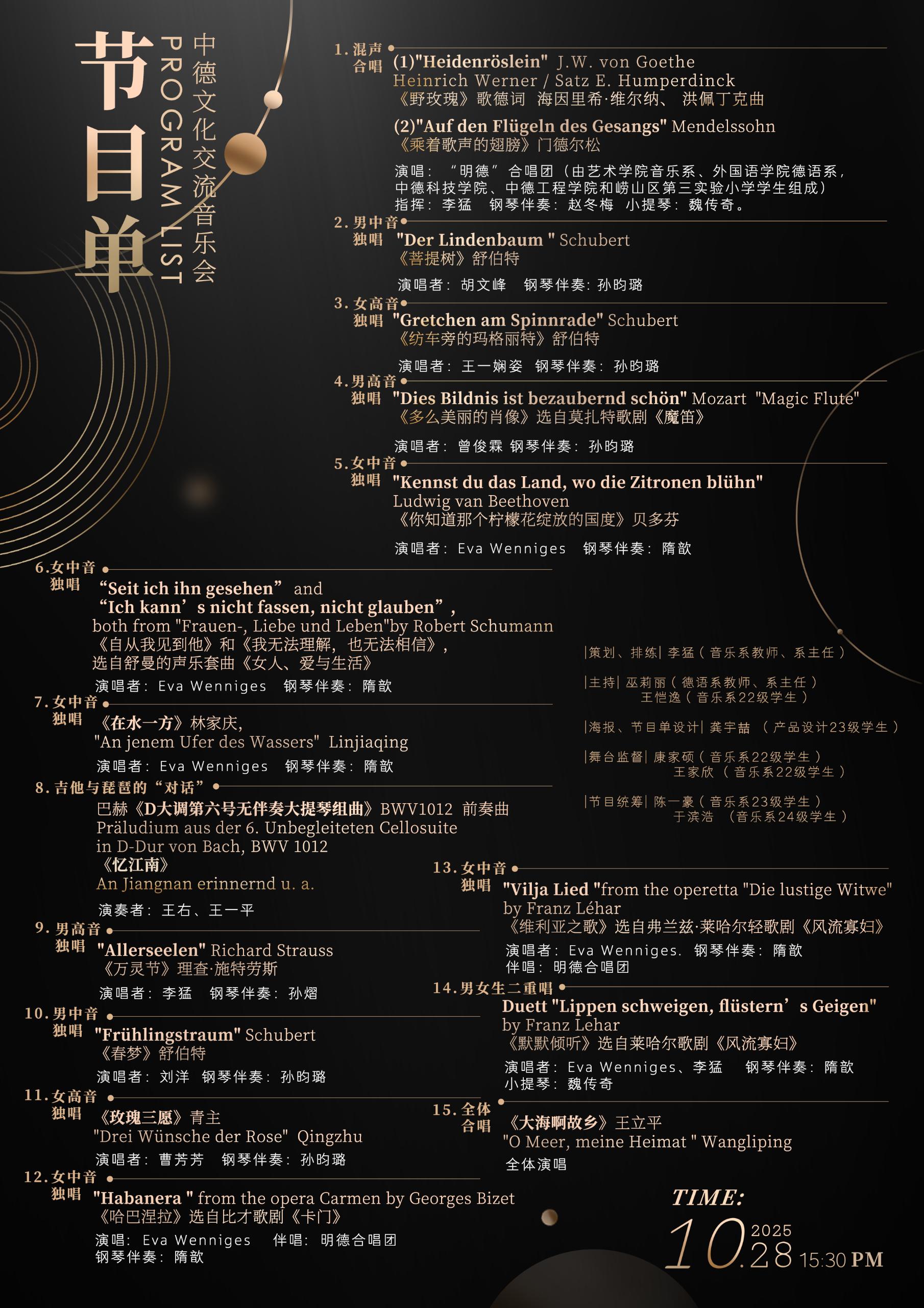 10月28日(周二)15:30 中德文化交流音乐会
