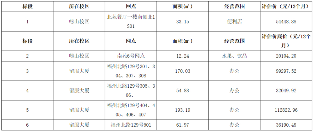 3.1租赁期:第1标段:自签订合同之日起至2027年4月13日;第2标段:自签订合同之日起至2026年6月底7月初,具体以南苑餐厅一楼改造停业时间为止;第3-6标段租赁期:自签订合同之日起2年。