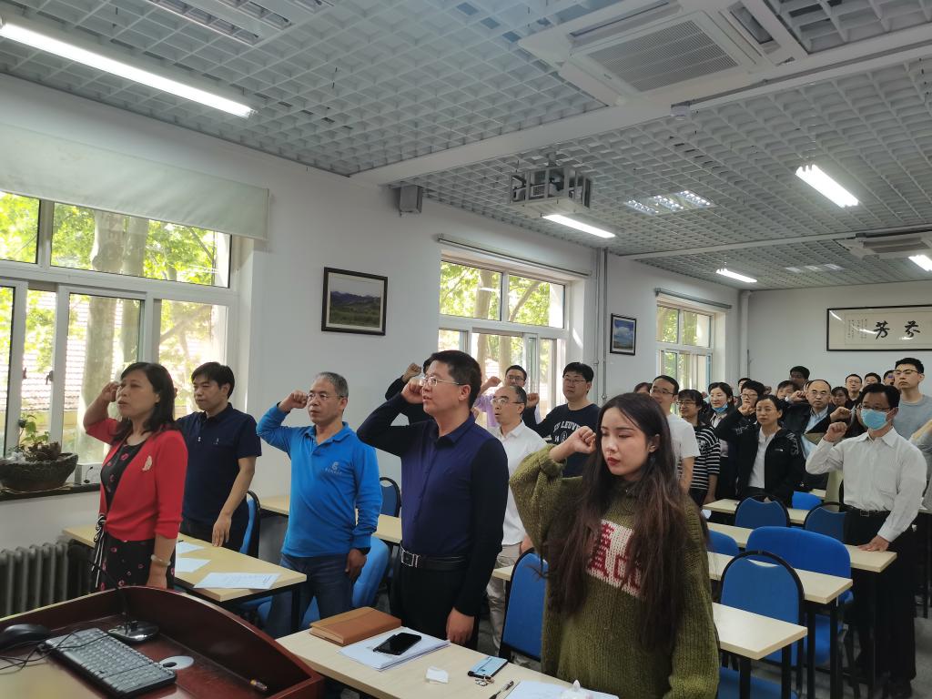 王青领誓高校教师誓词,全院教职工高举右手,紧握拳头,誓言铮铮。老师们纷纷表示将会信守师德规范,履行师德承诺,以实际行动做新时代“四有”好老师。