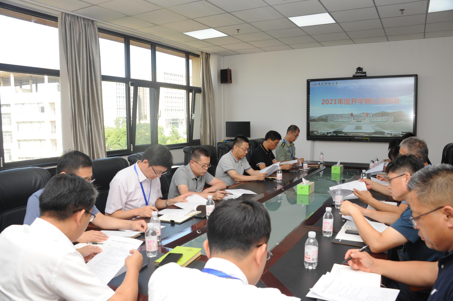 9月13下午,学校在崂山校区综合服务楼6006会议室召开2021级学生开学典礼暨军训成果汇报大会协调会。党委常委、副校长吕万翔出席会议并讲话,会议由党委(校长)办公室主任朱敬义主持。