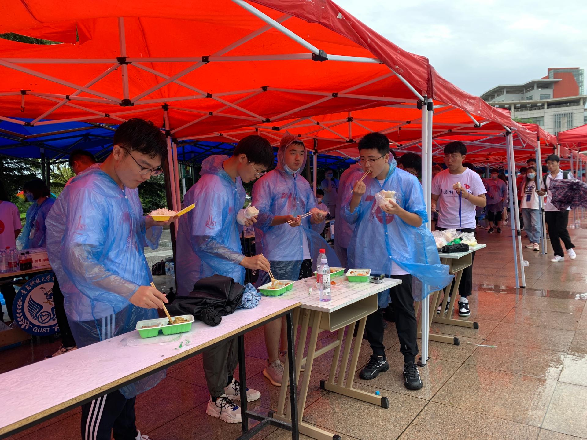 风雨兼程,科大做你避风港湾。9月4日是省内新生报道日,因军训安排报道时间相对集中,平均每小时到校人数高达千人,加之绵绵不断的秋雨,为迎新工作带来极大挑战。一天迎新工作结束,志愿者微信步数纷纷接近3万步,校学生会志愿者张皓越打趣道:“32000步却没进微信步数前15名,真是内卷严重。”“那天常常有人给我递雨衣,但是我们清楚,不知道是雨是汗,身上的短袖早就湿透了,虽然累到极点,但也干的酣畅淋漓。”社团管理部学生骨干杨泽霖说道。应统202班的黄文静早上五点半就和志愿者们抵达校门口,秋雨疾风同新生一起涌入学校,不停地往返穿梭于校门和大巴站两个服务站点,让本就低血糖的她累得差点晕倒,幸亏有服务站点准备的水果糖才让她慢慢回过神来,黄文静说:“虽然很辛苦,但是在志愿者的互相鼓励中、在家长感激的神情中、在学弟学妹的句句感谢中,我会铭记每个坚守的日夜,这是成长留下最美的印记。”