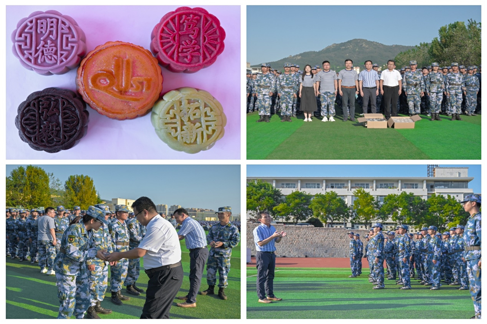 月是故乡明,科大月饼表浓情。为让大一新生感受到学校的温馨氛围,在临近中秋之际,学院院长刘国柱、党委书记刘庆、党委副书记王军为正在军训的学生送上青科大专属月饼及节日祝福,让第一次独自在外求学的新生感受到家一般的温情和暖意。
