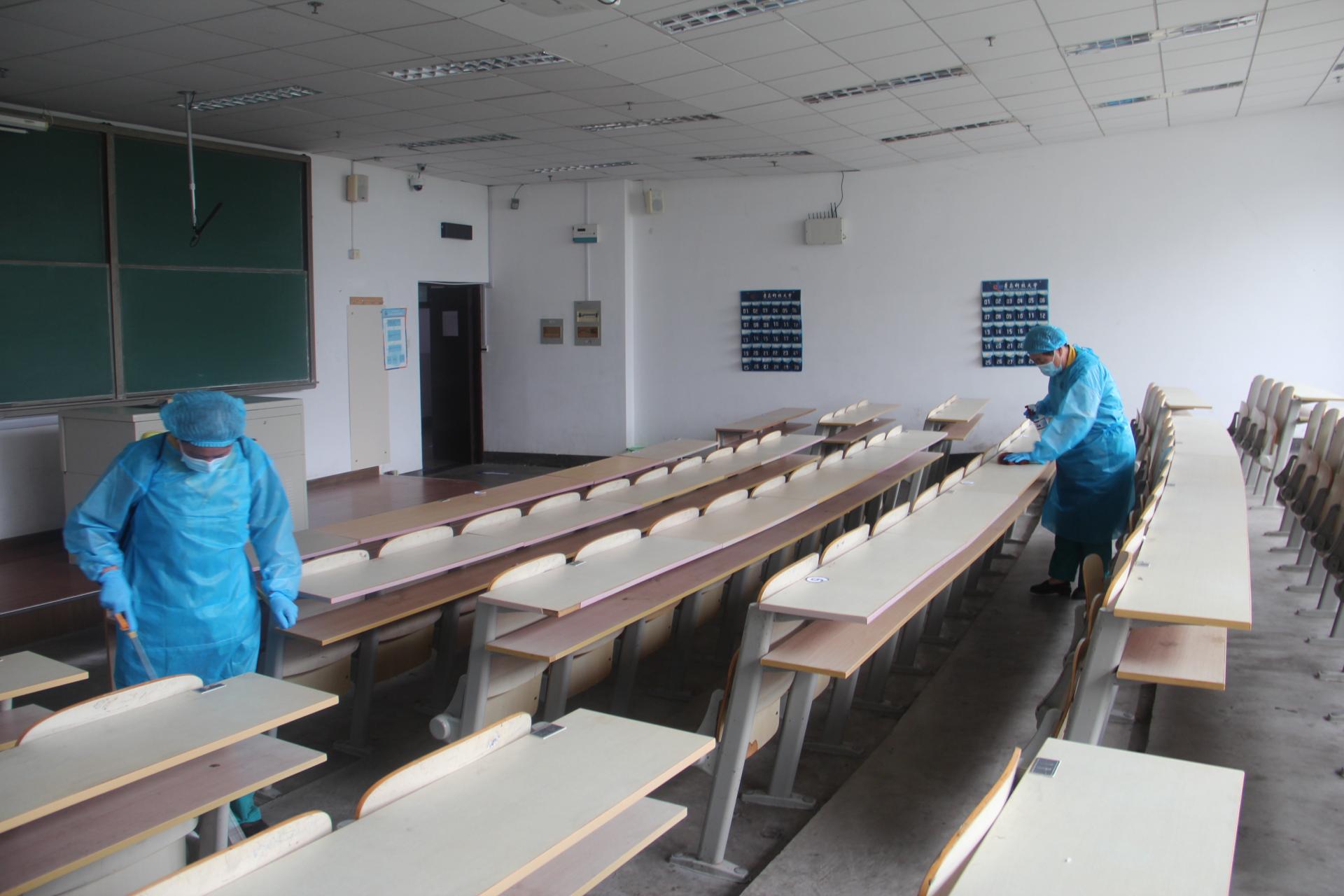 防疫物资配备到位:积极联系和接受社会捐赠口罩20余万只,消毒液400余箱;采购大型测温设备10台,安置在在学校门口,校内各餐厅进口处和其他人流密集场所;为各楼宇配备喷雾器、消毒液、测温枪等防疫物资,为每个学生宿舍都配发体温计。