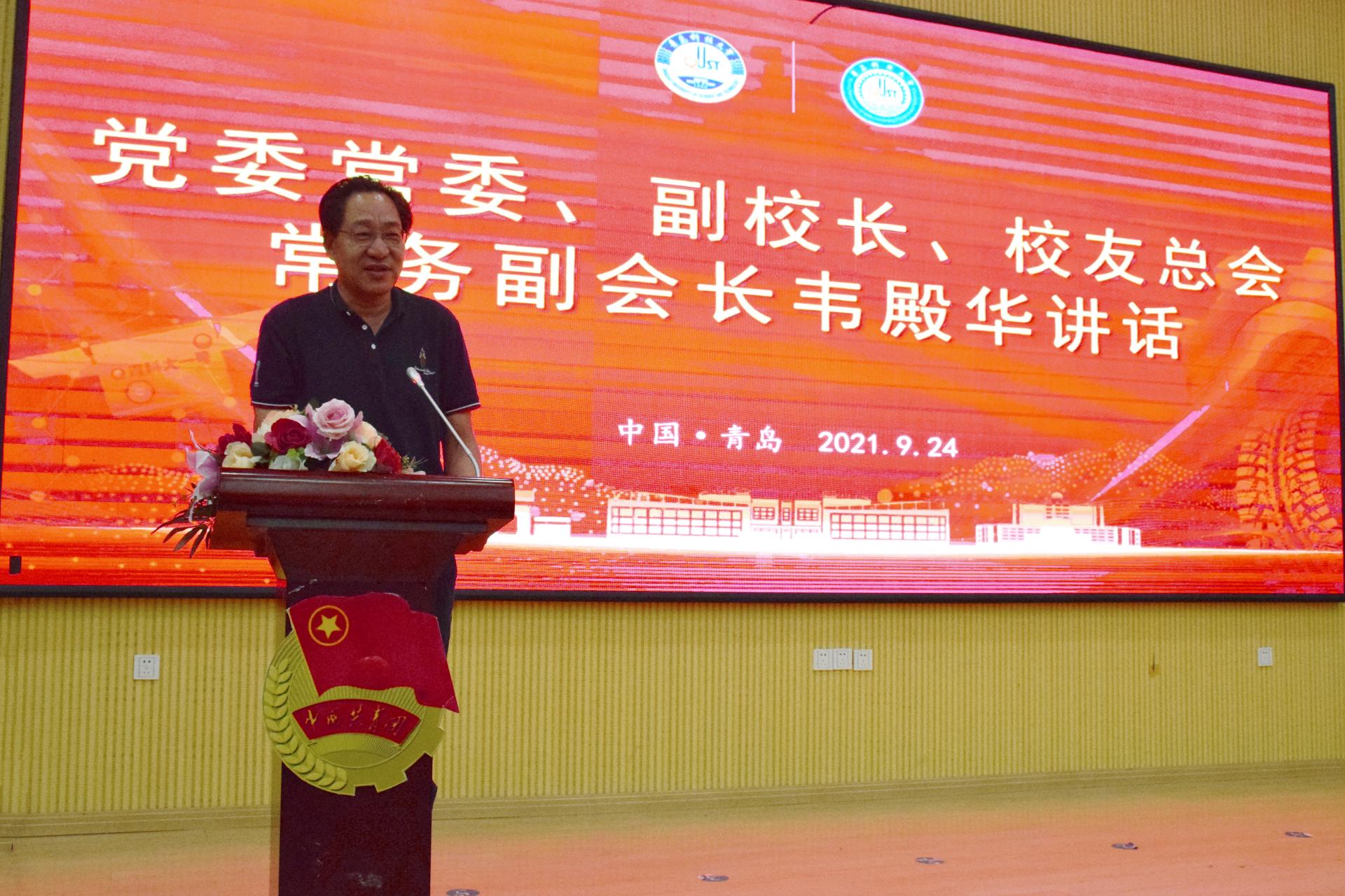 9月24日上午,学校2021年校庆日系列庆祝活动启动暨青岛福诺化工科技有限公司捐赠仪式在四方校区尚舜报告厅举行。党委常委、副校长、校友总会常务副会长韦殿华,青岛福诺化工科技有限公司董事长傅秀成,青岛校友会副秘书长、上海锦天城(青岛)律师事务所主任王宇出席仪式。