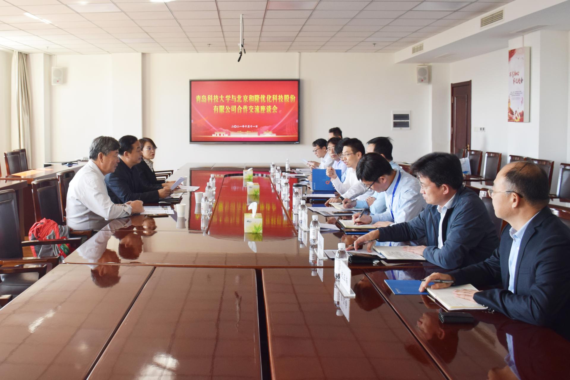 10月11日下午,学校与北京和隆优化科技股份有限公司合作交流座谈会在综合服务楼3015会议室召开。党委常委、副校长吕万翔,学校84级校友、北京和隆优化科技股份有限公司董事长于现军出席座谈会。