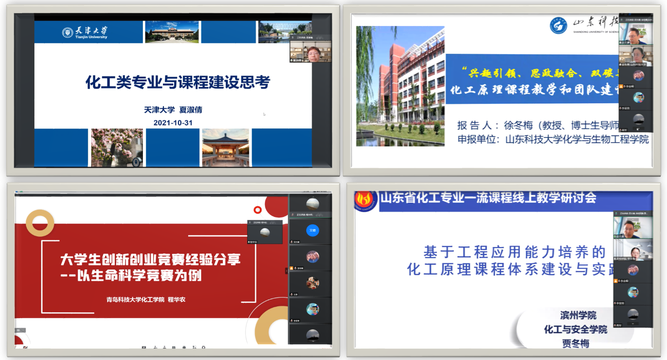10月31日下午,由山东省化工类专业教学指导委员会、学校化工学院联合举办的山东省化工专业一流课程线上教学研讨会在四方校区举行。研讨会采用线上形式,来自天津大学、山东科技大学、滨州学院和学校化工学院等省内外高校近40名专家参加了会议。
