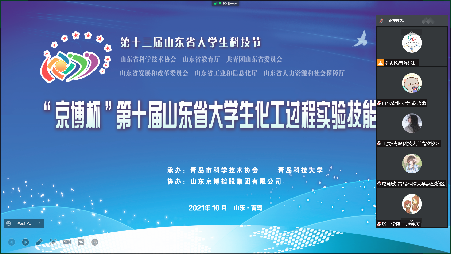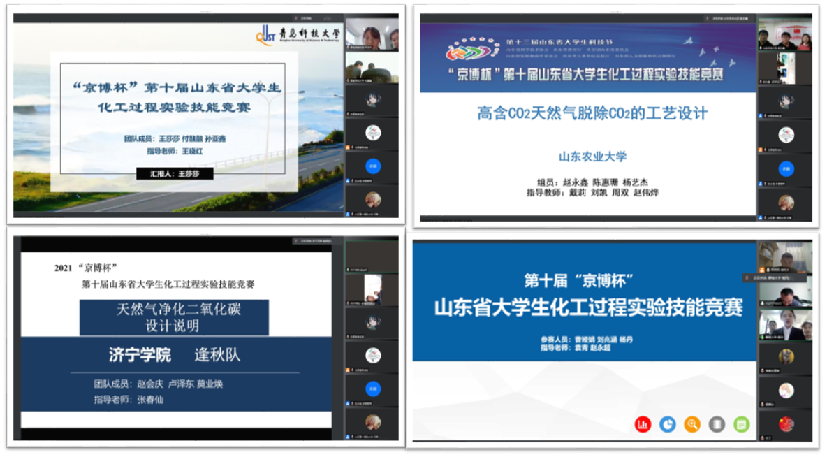 日前,由省科协、省教育厅、团省委、省发改委、省工信厅、省人社厅主办,青岛市科协、万象城allwincity官网、天津大学承办,山东京博控股集团有限公司协办的“京博杯”第十届山东省大学生化工过程实验技能竞赛在学校举行,此次竞赛采取线上方式,来自中国海洋大学、中国石油大学(华东)、山东科技大学、山东理工大学和万象城官网等省内26所普通本科高校的417支团队参加比赛。