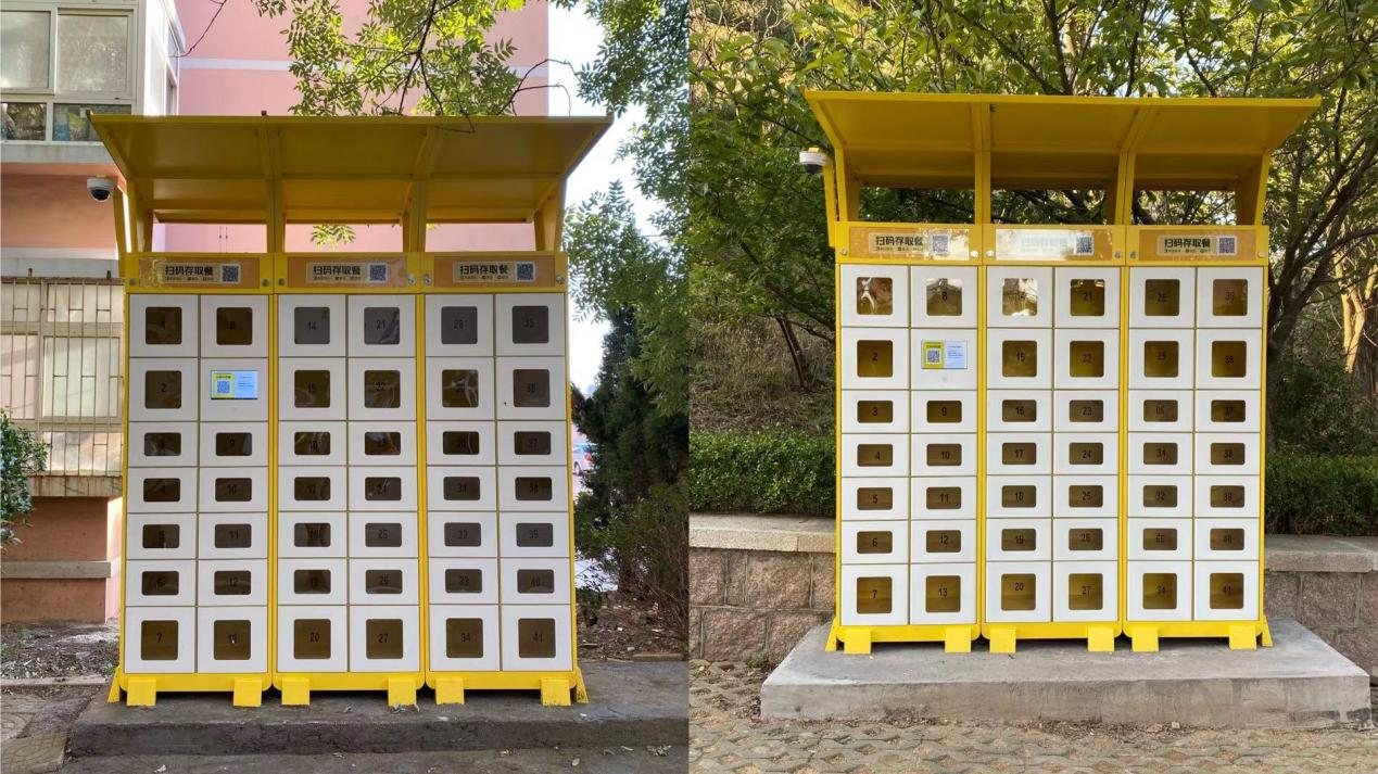 同无接触配送类似,工作人员从分餐点取餐后配送放置在取餐柜内,订餐者手机收到取餐信息,根据取餐信息到相应取餐柜取餐后完成订单。