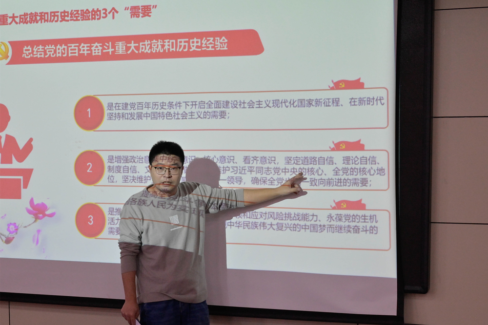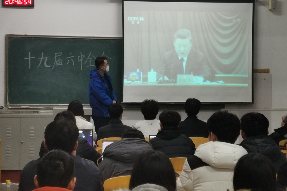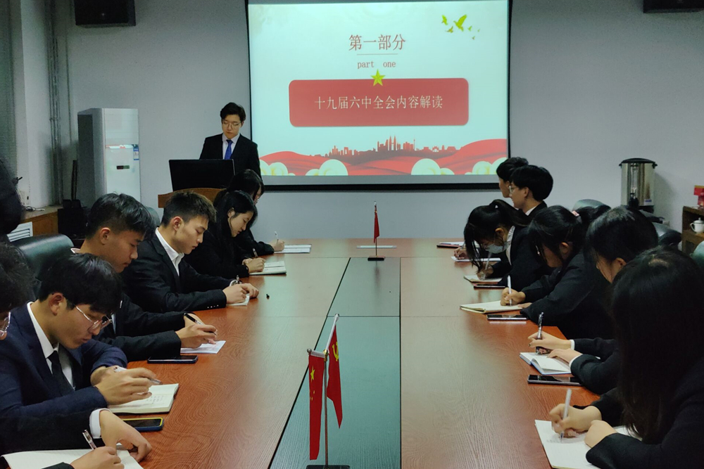 聚焦关键少数“领学”,在“率先垂范”上显担当。学院党委高度重视党的十九届六中全会精神的学习贯彻工作,党委领导班子带头领学,学院党委理论学习中心组第一时间组织学习会议公报及《中共中央关于党的百年奋斗重大成就和历史经验的决议》,全面准确把握习近平总书记在全会上的重要讲话和全会精神的丰富内涵、精神实质,不断将学习全会精神与推进学院各项重点工作深入结合起来。学院全体辅导员坚持以立德树人为根本要求,通过集中观看、专题研讨的形式,切实把十九届六中全会精神学好、吃透,不断提升学习效果。