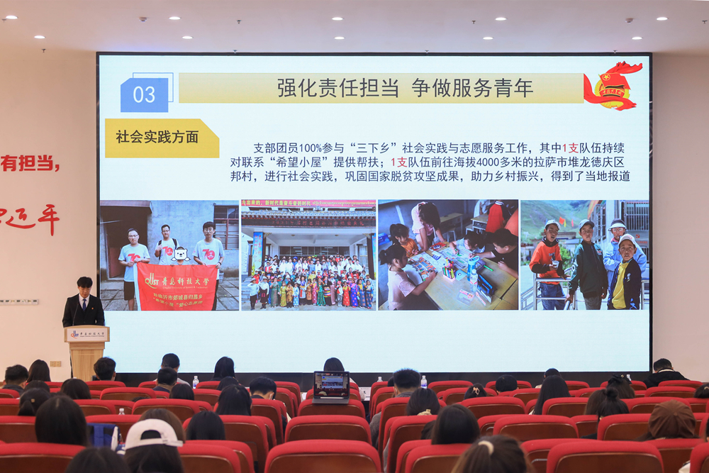 参与评审的20名团支书围绕“1+X+1”团支部创建体系,从工作机制、组织生活、支部建设等方面,展示自卓越团支部立项以来,以思想引领顶天、以德智体美劳五育并举促发展、以组织建设立地三个方面的典型活动及支部收获,并就思想引领、科技创新、学风建设、社会实践、志愿服务、希望小屋等方面做了特色汇报。现场评委从基层团务、团支部凝聚力建设等方面进行提问,团支书的精彩答辩充分彰显了团员青年昂扬向上的精神风貌及扎实的工作作风。
