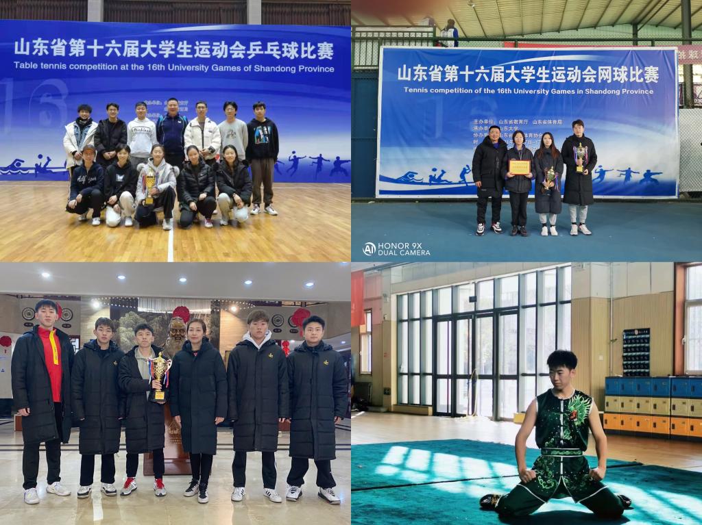日前,山东省第十六届大学生运动会乒乓球、网球、武术比赛项目分别在青岛职业技术学院、济南博格网球馆、曲阜师范大学落下帷幕。万象城官网学子在乒乓球、网球项目男子甲组、女子甲组,武术项目男子丙组的比赛中获佳绩,刷新学校在山东省大学生运动会获奖新纪录。