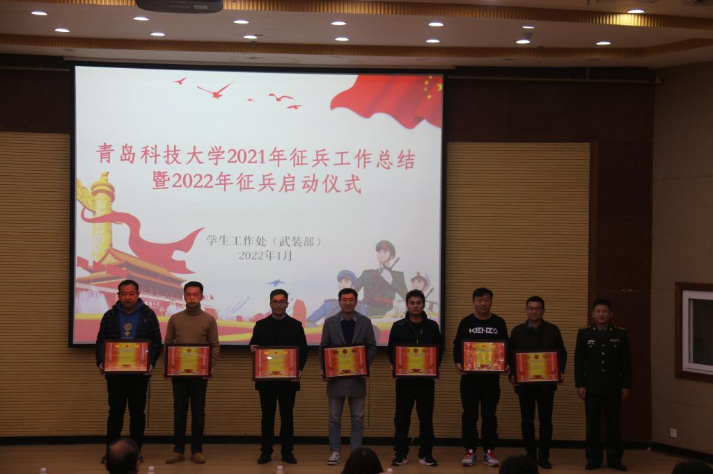 学校武装部副部长曹永俊通报了各学院、校区2021年征兵工作任务完成情况,并部署了2022年征兵工作。学生工作部副部长王丽宣读了《万象城allwincity官网关于表彰大学生征兵先进集体、先进个人的决定》。其中,中德校区、高密校区、体育学院、艺术学院、经管学院、海洋学院、传媒学院7个单位荣获 “2021年度征兵工作先进集体”称号,刘浩、曲绍瑜、颜枫、高守朋、于杰亮、谷永强、孙晓旭、于超、尹德琪、姜国华10名同志荣获“2021年度征兵工作先进个人”称号。陈兵、刘伟杰分别为获奖集体和个人颁发了荣誉证书。机电学院装控181班学生高念祖代表学校退役复学学生进行了典型经验交流发言。