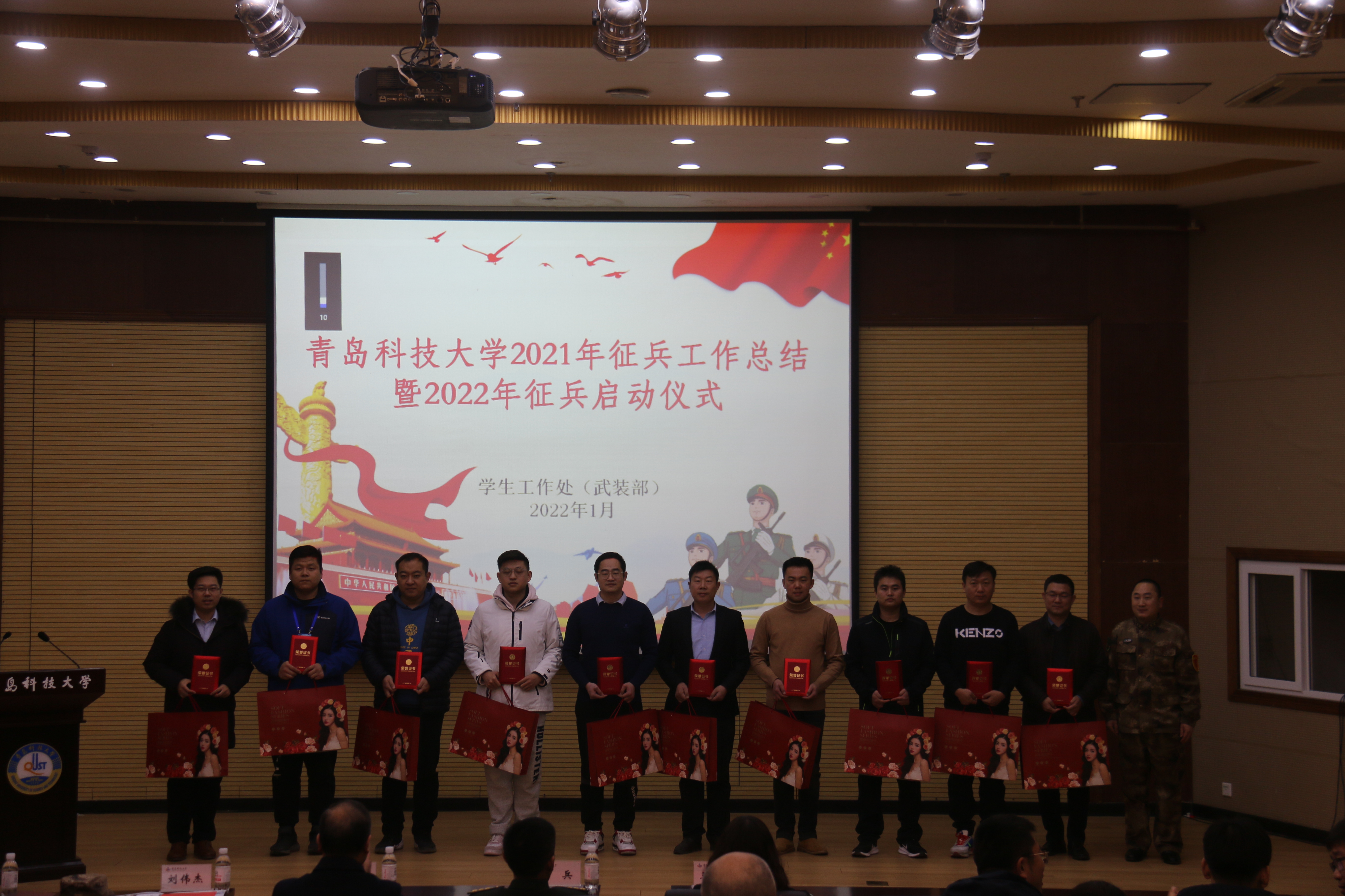 1月7日下午,学校2021年征兵工作总结表彰暨2022年征兵工作启动仪式在崂山校区第一报告厅举行。学校党委常委、副校长丁林出席会议并宣布2022年征兵工作启动。青岛警备区动员处处长陈兵、市北区人武部副部长刘伟杰,学校相关职能部门负责人、学院分管学生工作书记、征兵工作联系人以及应征报名学生代表参加活动。会议由学生工作部副部长李华主持。