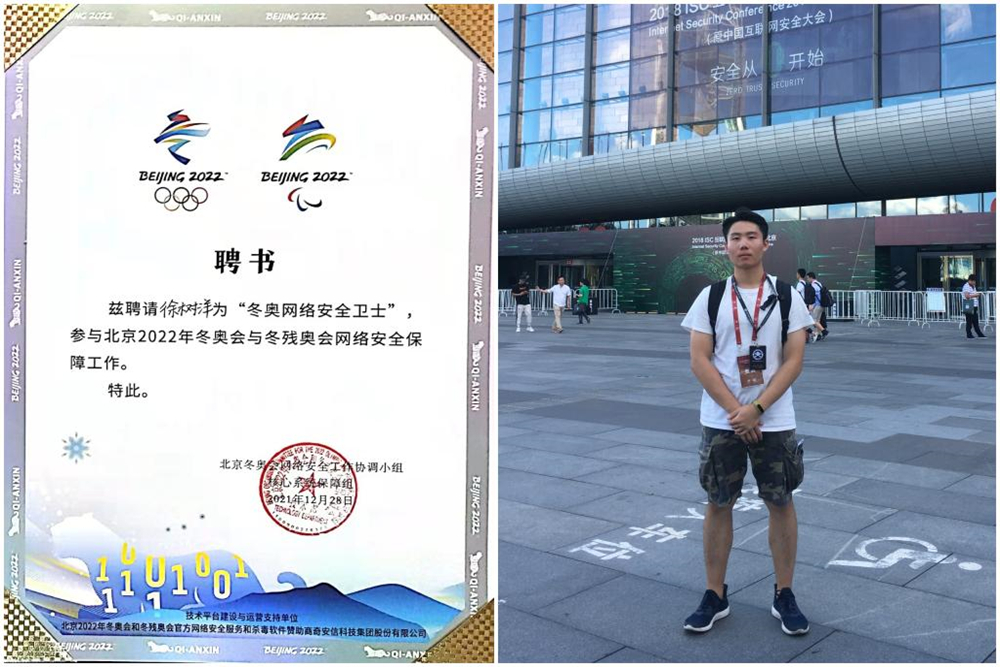 万象城官网信息学院2021届软件工程毕业生徐树洋经过层层筛选,被招募为北京2022年冬奥会和冬残奥会“冬奥网络安全卫士”志愿者。该项目是奥运历史上首个网络安全类公益保障项目,旨在招募中国优秀的网络安全技术人才,组建成一支技术卓越的网络安全中国代表队,保障2022年北京冬奥会和冬残奥会的网络安全。