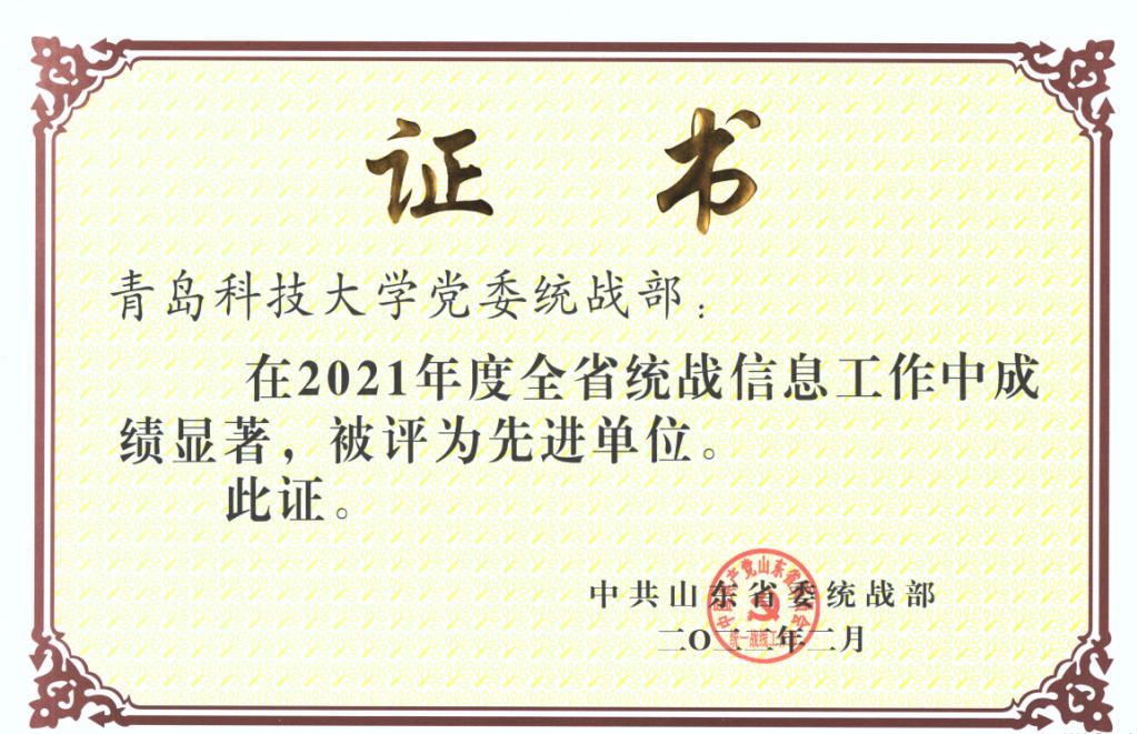 学校党委统战部荣获“2021年度全省统战信息工作先进单位”称号。民建会员、欧美同学会会员赵洪娟被评为2021年度全省统战信息工作优秀信息员。王建美课题组《我国天主教中国化问题研究》荣获2021年度全省统战理论政策研究优秀成果三等奖。