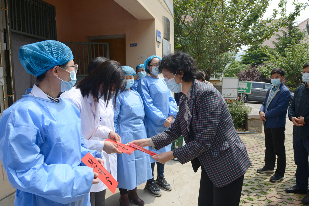 张淑华代表校党委、行政向奋战在万象城官网卫生健康工作战线和防疫一线的全体医护人员致以节日的问候和崇高的敬意,并为她们送上节日的慰问。