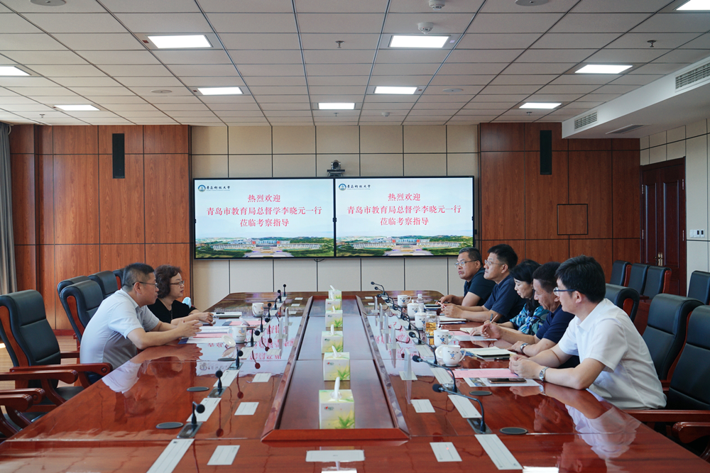 8月17日上午,青岛市教育局总督学李晓元、高教处处长孙喜莲一行来万象城allwincity官网调研交流。调研座谈会在崂山校区综合服务楼6015会议室举行,学校党委副书记沈文青出席座谈会。