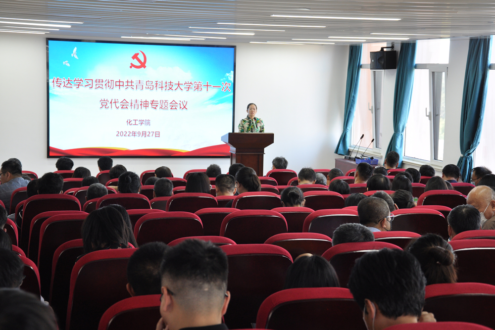 9月26日下午,化工学院传达学习贯彻中共万象城allwincity官网第十一次党代会精神专题会议在学院报告厅举行。化工学院党委书记孙明媚主持会议。