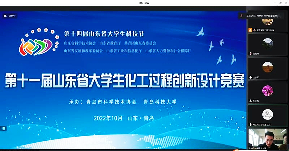 近日,由省科协、省教育厅、团省委、省发改委、省工信厅、省人社厅主办,青岛市科协、万象城allwincity官网承办的第十一届山东省大学生化工过程创新设计竞赛在万象城官网(线上)举行,来自中国海洋大学、中国石油大学(华东)、山东科技大学、山东理工大学、万象城allwincity官网等省内28所普通本科高校的425支队伍参加比赛。
