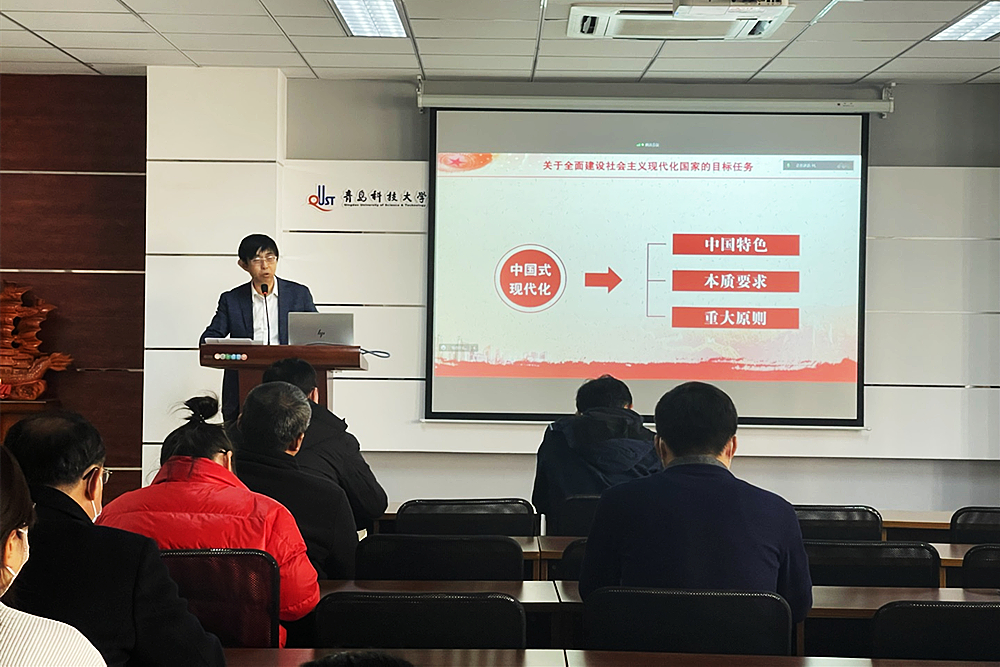 李少远按照中央“九个深刻领会”和“七个讲清楚”的要求,结合党的二十大报告对教育科技人才的具体工作部署、省委以及学校的具体要求,从中国式现代化、全面建设社会主义现代化国家的目标任务及教育科技人才的战略部署三方面的内容展开详细讲解。