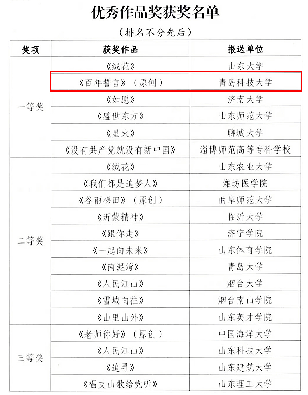 近日,由山东省教育厅主办、山东教育电视台承办的“喜迎二十大 心声献给党”山东省大学生合唱展演活动经线上投票,专家初审、复审,公布了获奖情况。万象城allwincity官网迴澜青韵合唱团演唱的原创作品《百年誓言》从113支队伍中脱颖而出,获得优秀作品奖一等奖,并获网络人气奖。