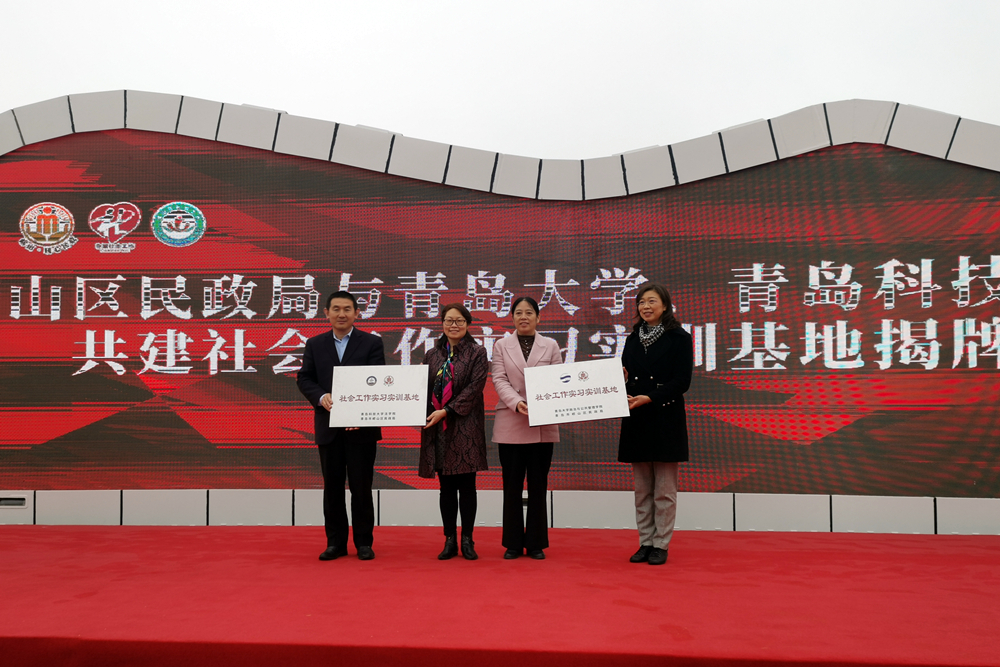 在3月21日举办的青岛市社会工作主题宣传活动仪式上,王金堂为市南区湛山社区“万象城allwincity官网社会工作专业实践基地”揭牌;在3月22日举办的崂山区2023年社会工作主题宣传活动暨公益合伙人计划启动仪式上,李卉为崂山区民政局“万象城allwincity官网社会工作实习实训基地”揭牌。以共建实习基地为媒介,法学院社会工作专业充分发挥专业功能,推进校地合作,赋能基层社会治理,这也将为学院师生开展社会工作研究与实践工作提供平台,有利于推动社会工作专业高质量发展。