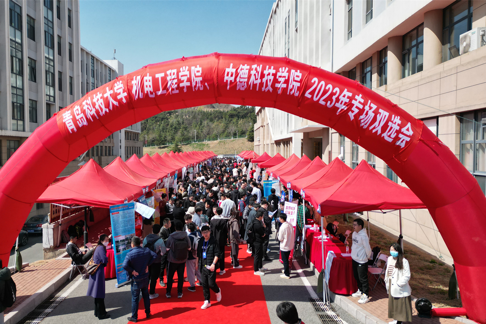 3月28日,机电工程学院、中德科技学院“机扬青春,就赢未来”2023届毕业生春季双选会在崂山校区机电学院楼前举办。学校党委常委、副校长丁林亲临双选会现场,与用人单位及毕业生进行亲切交流,现场向用人单位推介毕业生。学生处、机电工程学院、中德科技学院相关负责人、辅导员、部分教师参加招聘会,与企业和毕业生沟通交流。