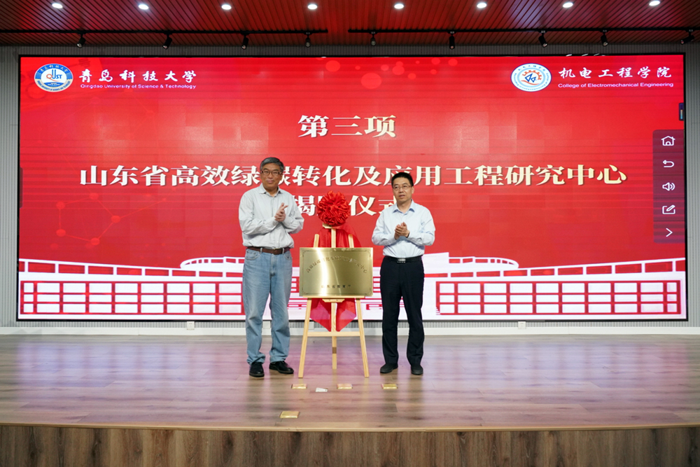 仪式上,吕万翔,魏振文代表校企双方共同为山东省高效绿碳转化及应用工程研究中心揭牌。