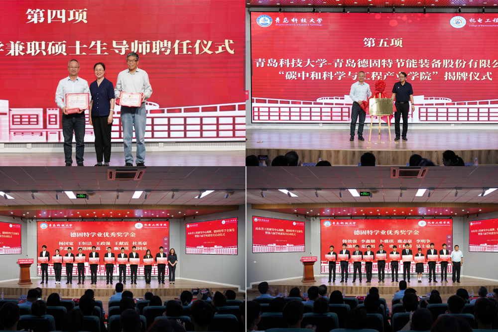 机电工程学院举办山东省工程研究中心揭牌、碳中和产业学院揭牌、德固特奖学金颁发暨第六届学风建设月启动仪式