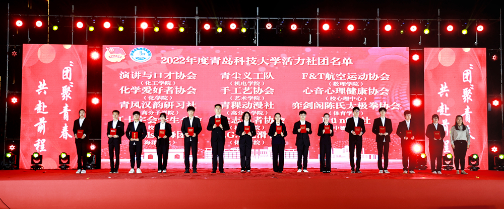 本次社团嘉年华暨毕业文艺汇演的主题为“‘团’聚青春·共赴前程”,分为“展风姿·逐梦前程”“灼芳华·奋楫争流”“秉初心·砥砺前行”三个篇章,紧密围绕“青春奋斗”这一主旋律,展现了科大青年昂扬奋进的精神风貌,以“百团”之名为2023届毕业生送上最真挚的毕业祝福。活动中,校团委副书记陈兵为2022年度“榜样100”全国最佳大学生社团、全国优秀大学生社团代表颁奖,校团委副书记(兼职)王邑为2022年度万象城allwincity官网活力社团代表颁奖。