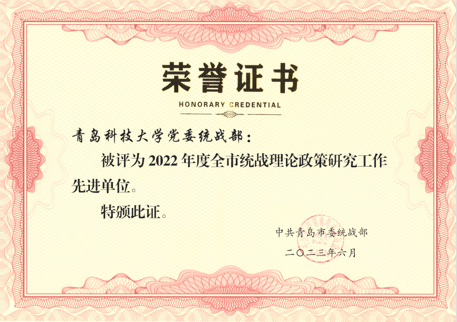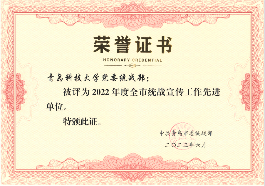 党委统战部荣获青岛市统战理论政策研究、统战宣传工作先进单位