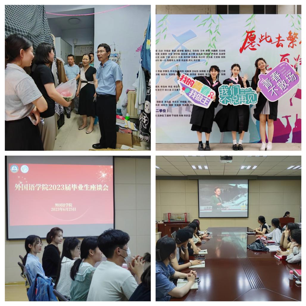 外语学院团委开展了毕业生离校志愿服务、爱心捐书活动,为毕业生温暖送行,让毕业生们离校不孤单;开展“我对母校有话说”、誊写毕业寄语、毕业留影等系列活动,引导毕业生们执笔写下心中对母校的不舍与对母校美好未来的期望;学院领导走访宿舍送去“夏日西瓜清凉”、开展毕业座谈会、书记为学生党员上党课,对毕业学子送去最后美好祝福。