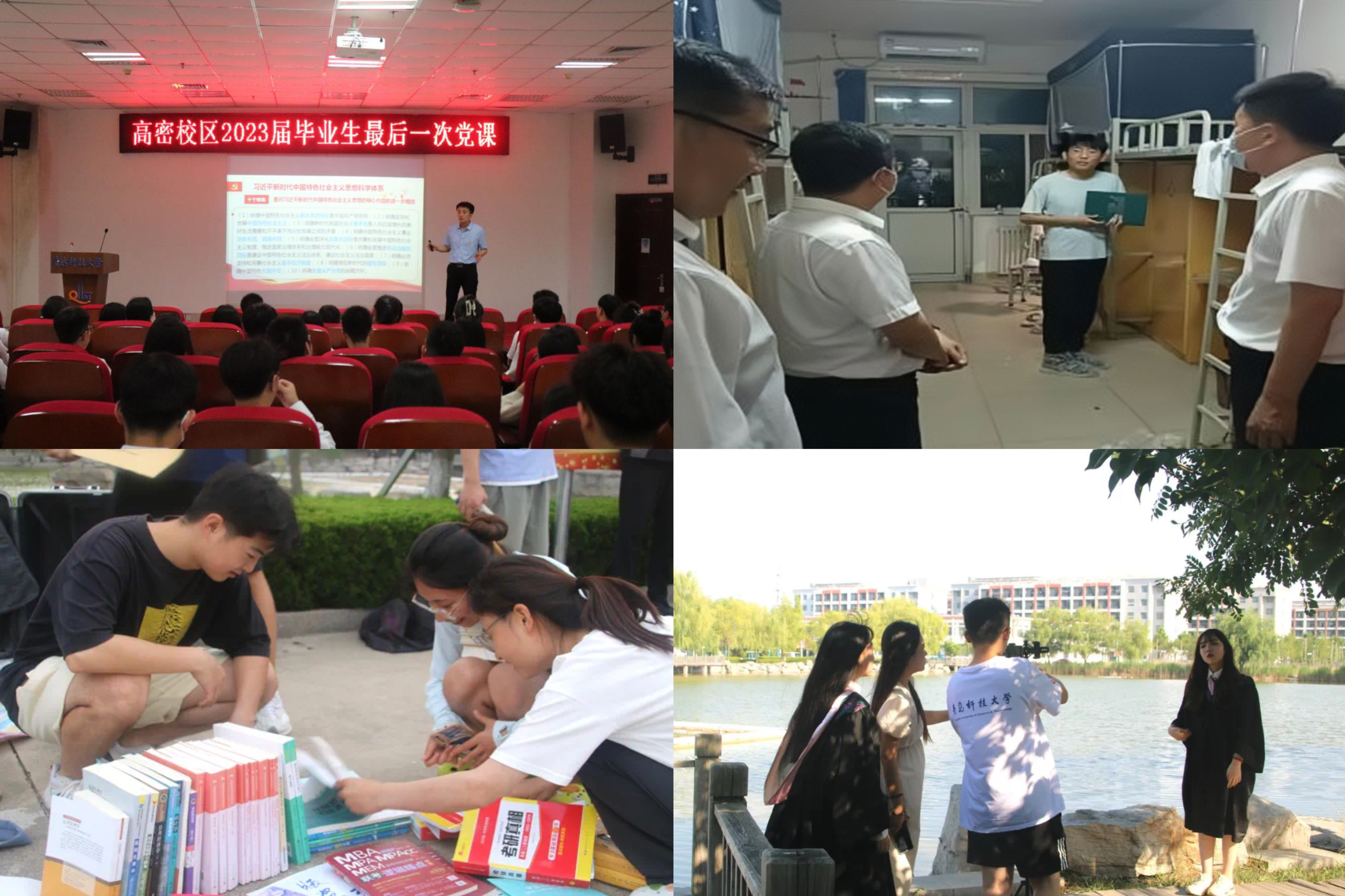 高密校区团委以“送出一份温暖,留下一份美好,传递一份真情”为宗旨,为2023届毕业生打造更温暖、更有纪念意义的毕业季系列活动。校区党委书记王建民以“在中国式现代化的伟大征程中绽放青春之花”为主题,为毕业生讲授了离校前的最后一次思政课。举办“青春不散场·梦想正启航”毕业生物资专项调剂市场活动,引导同学们自觉养成勤俭节约、珍惜劳动成果的低碳生活习惯。开展“青春定格 我帮你拍”毕业照拍摄志愿服务工作,助力毕业季,传递校园情。