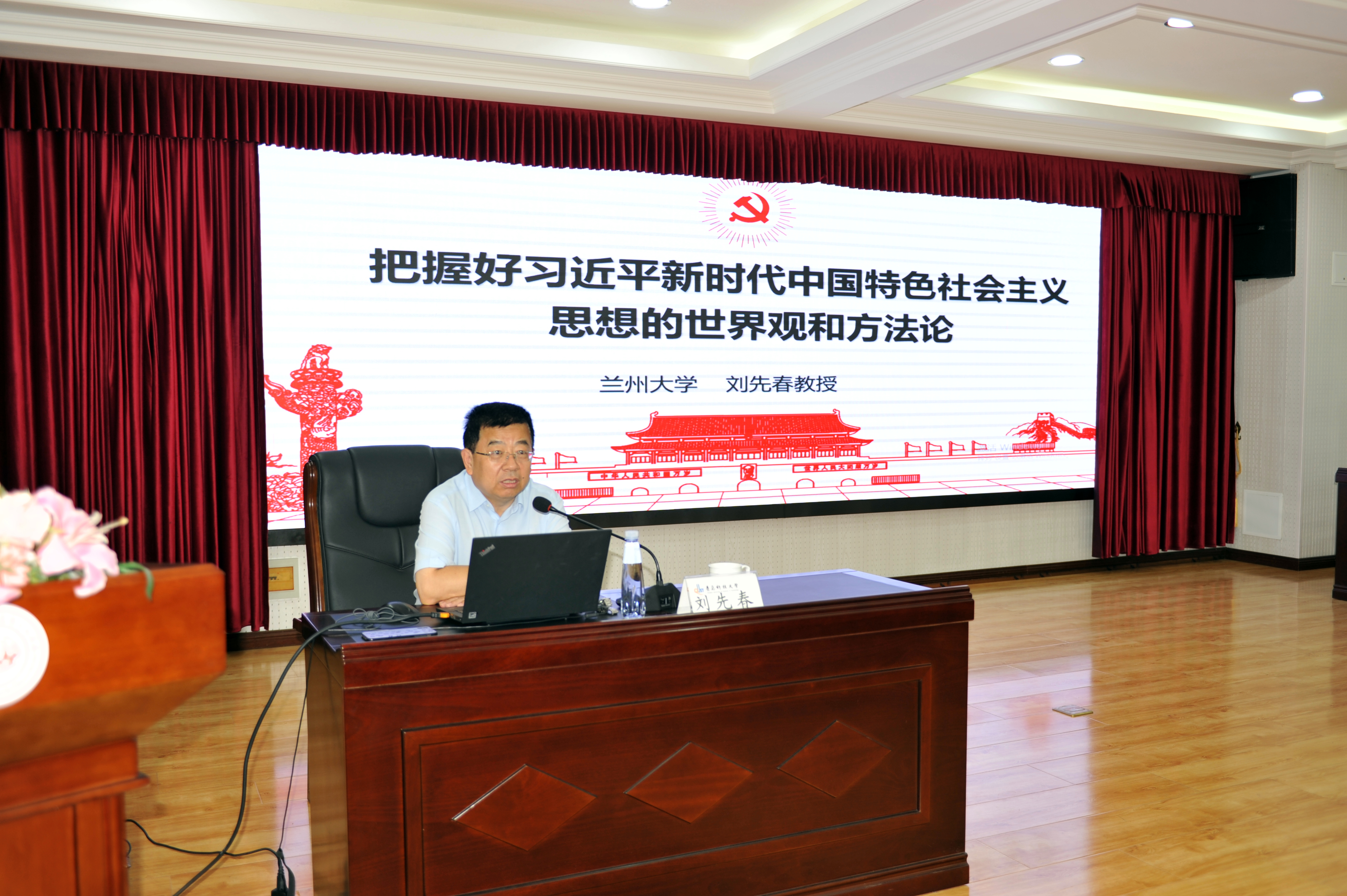 为深入学习贯彻习近平新时代中国特色社会主义思想,推进主题教育走深走实,7月7日上午,由党委宣传部、马克思主义学院举办的科大讲坛在马克思主义学院学术报告厅举行。中央马工程首席专家、国家级教学名师、兰州大学二级教授刘先春作题为《把握好习近平新时代中国特色社会主义思想的世界观和方法论》辅导报告会。学校党委常委、宣传部部长张洪坤出席报告会,报告会由马克思主义学院院长曹胜主持。