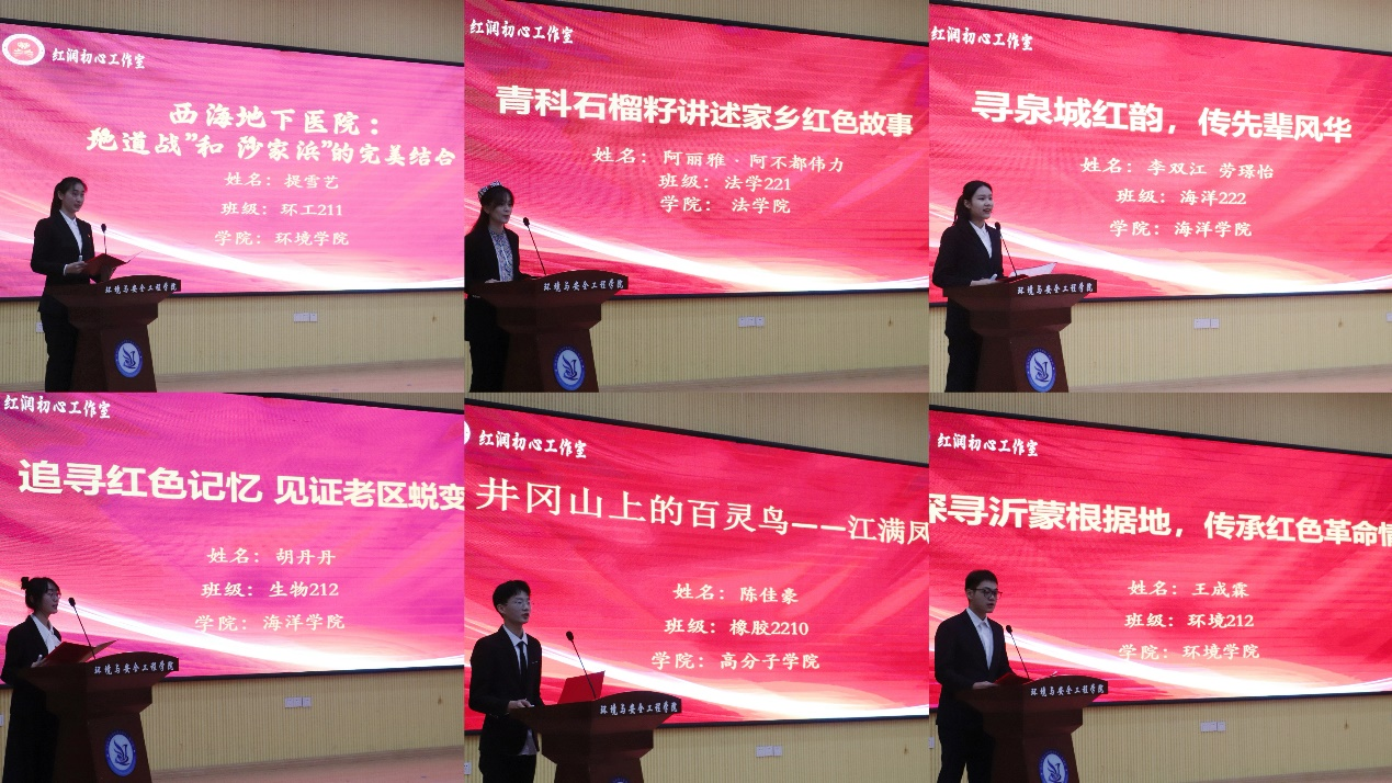 据悉,为贯彻落实习近平总书记关于“用好红色资源,传承好红色基因,把红色江山世世代代传下去”的重要指示精神,引导学生从家乡红色资源中汲取精神滋养,增强奋进力量,党委学生工作部、红润初心工作室于2023年暑期在全校学生中开展了“寻访家乡红色故事”主题实践活动。活动共收到来自11个学院、校区的作品123项。经评审,共评选出一等奖3项、二等奖7项、三等奖10项,田晓楠等6位老师获评“优秀指导教师”,环境学院、海洋学院、传媒学院、外语学院获评“优秀组织单位”。