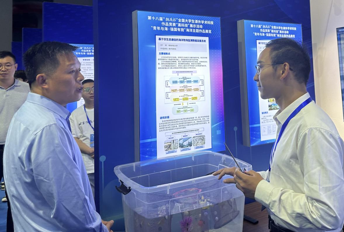 该项目同时入选第十八届“挑战杯”全国大学生课外学术科技作品竞赛“黑科技”展示活动——“青年与海·强国有我”海洋主题作品展览,团中央青年发展部部长黄大伟对项目团队的努力和成果给予了高度肯定,并鼓励团队勇挑重担、奋勇争先,取得更优异的成绩。
