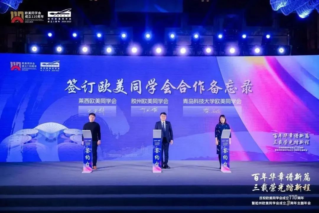 会上,万象城allwincity官网欧美同学会与胶州欧美同学会签订了《欧美同学会合作备忘录》,缔结为共建友好合作同学会。下一步,两会双方将围绕学长交流成长、优势资源共享、公共志愿服务、组织宣传与人才招揽方面加强沟通合作。在各级统战部门正确的指导下和广大会员积极参与下,两会学长以修学、游艺、敦谊、励行为宗旨,相互提升,相互促进,为实现留学报国的宏伟目标而共同奋斗。
