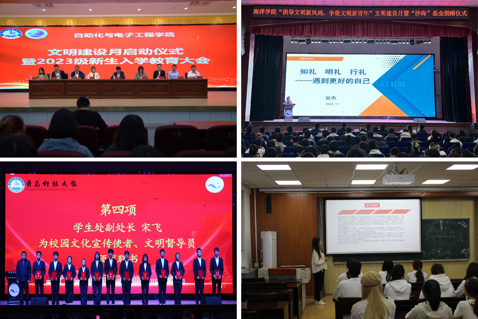 化工学院精心组织“明德知礼”研讨会,师生共同探讨道德、礼仪和公民责任等多个问题,组织学生签订诚信承诺书,引导学生以诚信原则约束日常行为。经管学院紧扣立德树人根本任务,构建全员育人工作体系,发布《塑文明新风,建和谐校园》倡议书,召开“明德知礼修身,共建文明校园”主题班会,引导学生养成良好的文明行为习惯。信息学院制作《文明礼仪,从我做起》宣传教育短片,在“图灵学舍”、教学楼走廊等公共区域张贴图文海报,线上、线下相结合,全方位进行文明教育。传媒学院建立“学院-班级-辅导员-班主任(导师)-党员”五级领学机制,以主题班会、年级组会、知识宣讲等形式学习党的二十大精神、学校第十一次党代会精神,夯实大学生的思想和行为基础。艺术学院开展理想信念教育和中华优秀传统文化教育,组织学生观看《明德知礼,文明求学》公开课并进行课程研讨,引导学生提升品德修养,承担社会责任。