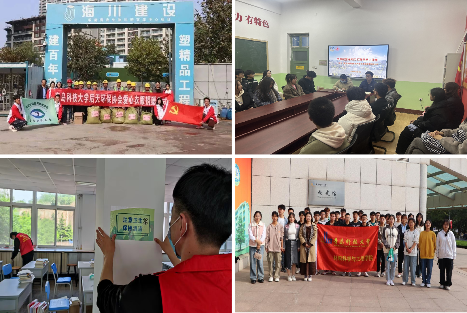 环境学院组织“环保人人有责,共建美丽青科”实践活动,联合其他驻青高校开展军训服公益捐助活动,让数千名一线建筑工人和社会大众受益,引导学子提升社会责任意识。材料学院组织开展“明德端学知荣辱,争做最美材料人”网络文明发声活动,增强学生合理用网意识和辨别是非、抵御网络谣言的能力,设立校园文明志愿者实践站,鼓励学生大力践行“奉献、友爱、互助、进步”的志愿精神。中德工程学院组织开展“学史立志,爱校荣校”主题知识竞赛和“青科印象”摄影大赛,聚焦建校73年来的发展大事记,展现青科大厚重历史底蕴和校园美丽风景,引导学生争做校园“守护者”。