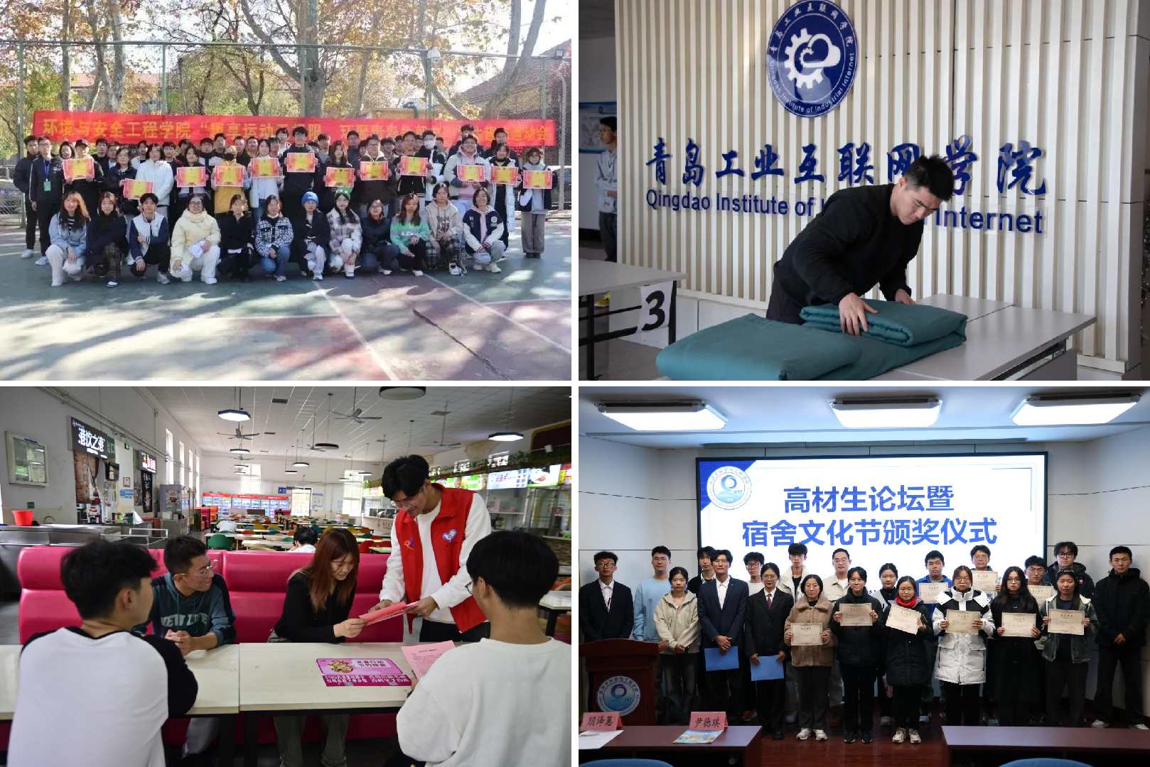 高分子学院开展“奇室妙想,橡尚启航”宿舍文化节,围绕“橡尚”“橡善”“橡美”“橡勤”“橡无畏”五橡理念,开展宿舍环境综合治理及文化建设,充分发挥宿舍“第一社会、第二家庭、第三课堂”的育人作用。海洋学院组织开展“海洋梦想秀”、班级文化节和“爱体育”健康跑评比等活动,引导学生在体育锻炼中健全人格、锤炼意志。机电学院以“品味书香,乐享学习”为主题打造“六新书屋”,发挥“一站式”学生社区育人功能,培养文化人才,提升学生综合素质,开展“节俭始于心,光盘践于行”光盘行动,倡树节俭之风,组织“机荧青春,追光未来”荧光夜跑活动,强健学生体魄。