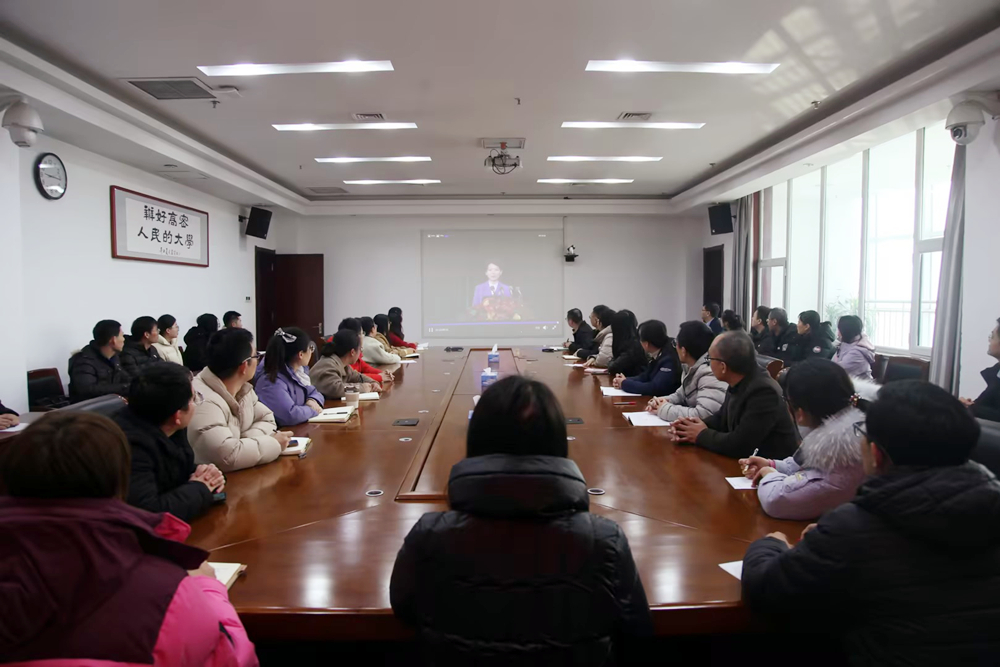 学校在崂山校区第三报告厅、四方校区尚舜学术报告厅、高密校区图书馆915会议室设分会场,党委教师工作部部长张洪坤,全体辅导员,青年教师代表在分会场集中收看学习,其他教师通过多种方式进行了学习。