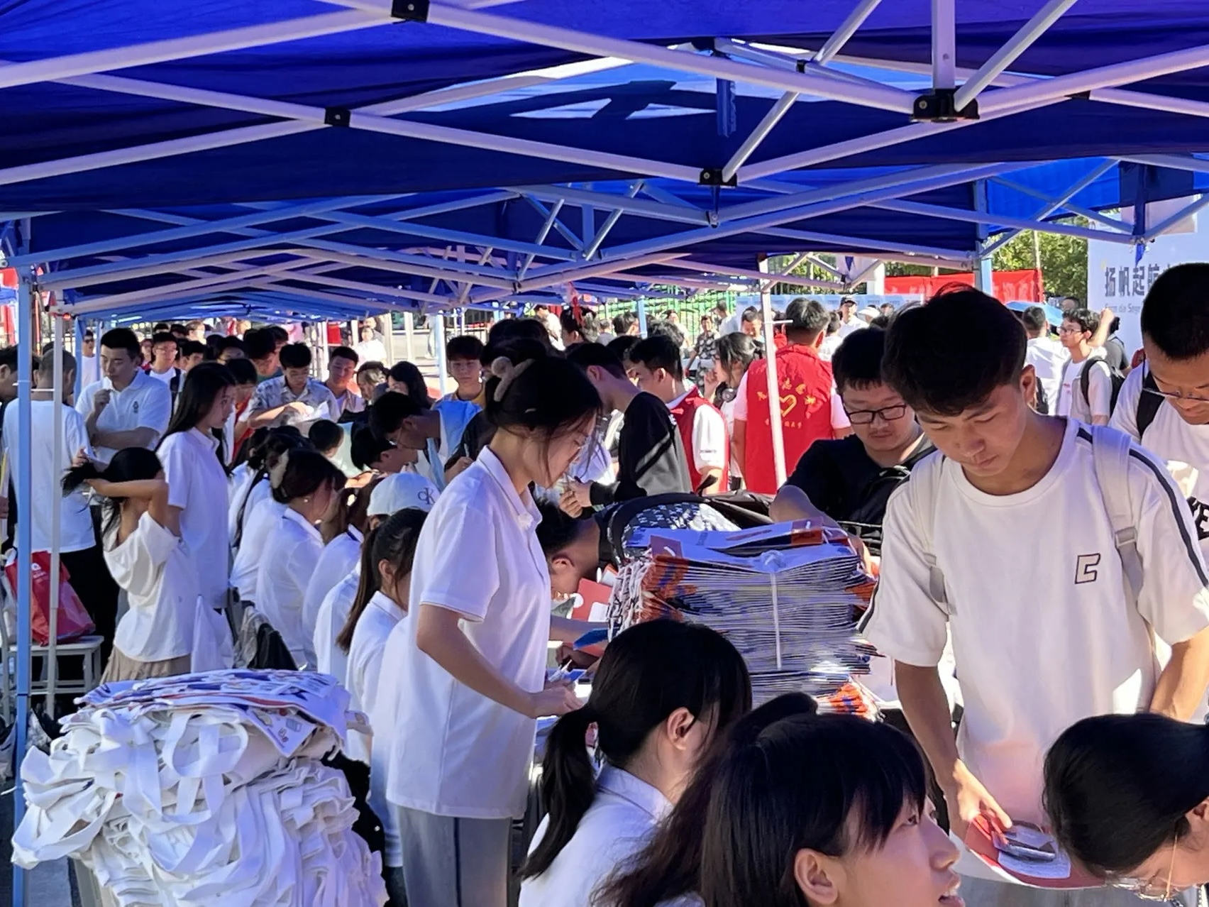 党团联动,全程保障。学院领导班子、教研室负责人、辅导员和师生党员全部参与到本次迎新工作中,搭建起“三全育人”格局,将立德树人内化到迎新工作各个环节,发挥党建带团建的强大优势,以“党员先锋岗”“团员服务站”“‘以新迎新’志愿服务站”带动报到当日温情服务,全院师生身着统一服装,以饱满的热情与活力迎接每一位新生,耐心地为新生办理入学手续、答疑解惑,对于现场遇到困难的新生,他们积极协调解决,用实际行动践行着党员、团员的先锋模范作用,保障每位新生顺利完成报到手续。