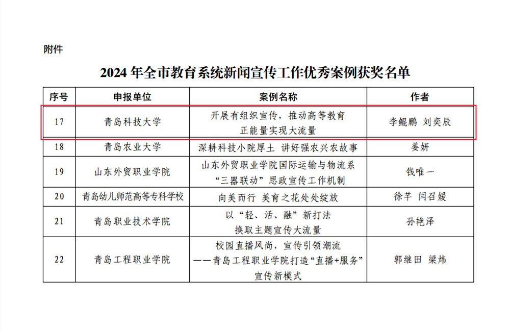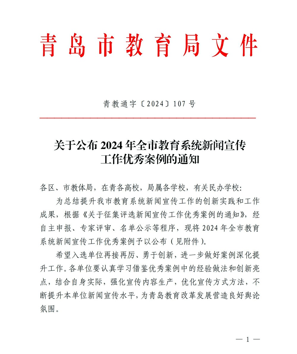 据悉,此次评选由青岛市教育局主办,旨在充分展示青岛市教育系统中优秀案例的经验做法和创新亮点。参评范围包括青岛市各区、市教体局,在青各高校,局属各学校,有关民办院校。