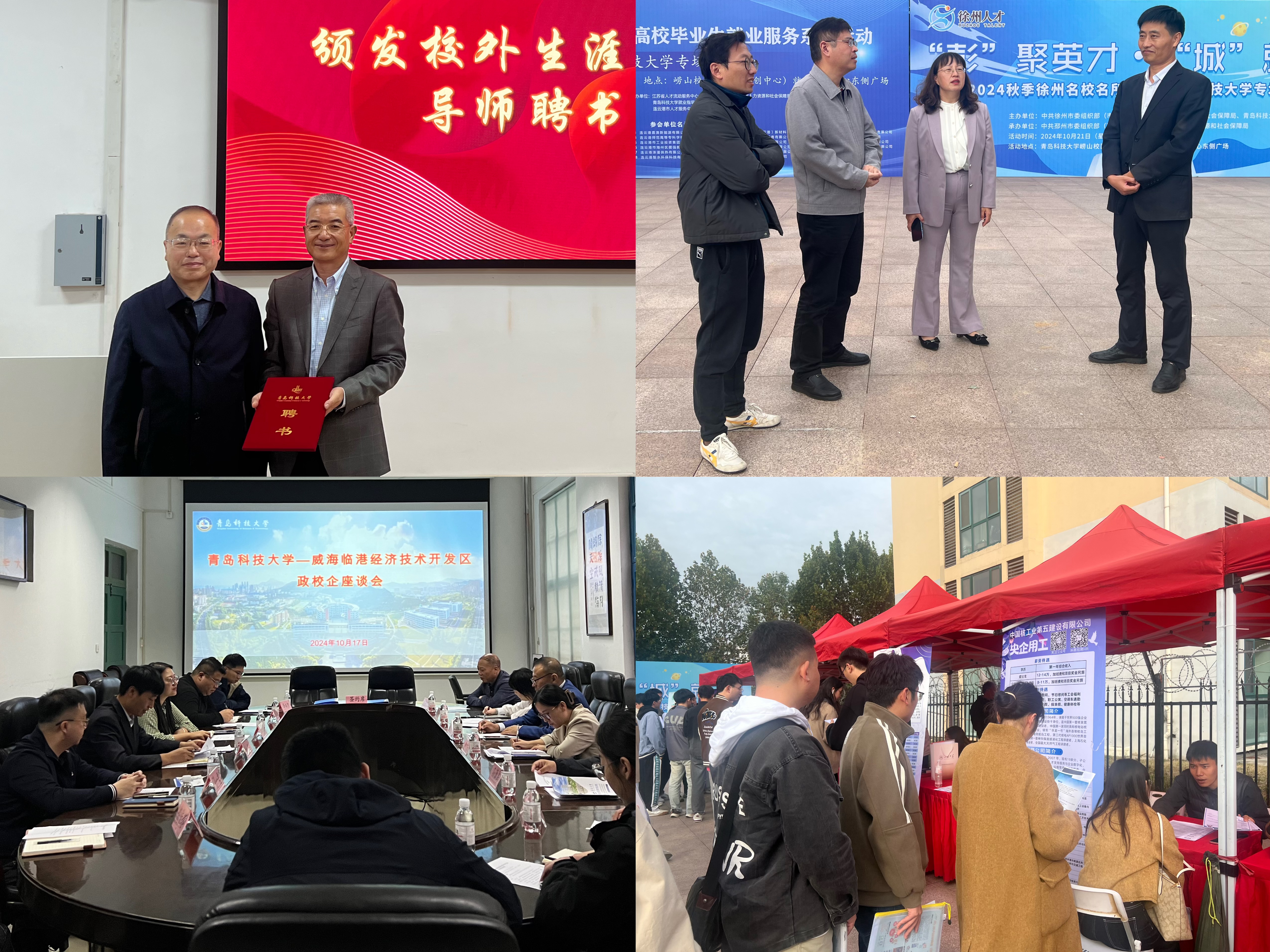为进一步强化就业育人与地方产业发展同频共振,畅通拓展人才供需对接渠道,全力促进2025届毕业生高质量充分就业,近日,学校与多地持续开展政校企对接交流,分别与新疆生产建设兵团第六师五家渠市,江苏徐州市、连云港市,山东威海临港区经济技术开发区以及彤程新材料集团股份有限公司开展交流座谈并举办专场招聘活动。学校党委常委、副校长丁林,橡胶制品专业1985届校友、彤程新材料集团股份有限公司副董事长周建辉,学生工作处处长王丽,五家渠市公共就业和人才服务局局长郭小峰,威海临港区科技创新局党组成员、四级专员倪涛以及徐州市、连云港市人社部门负责人参加活动。