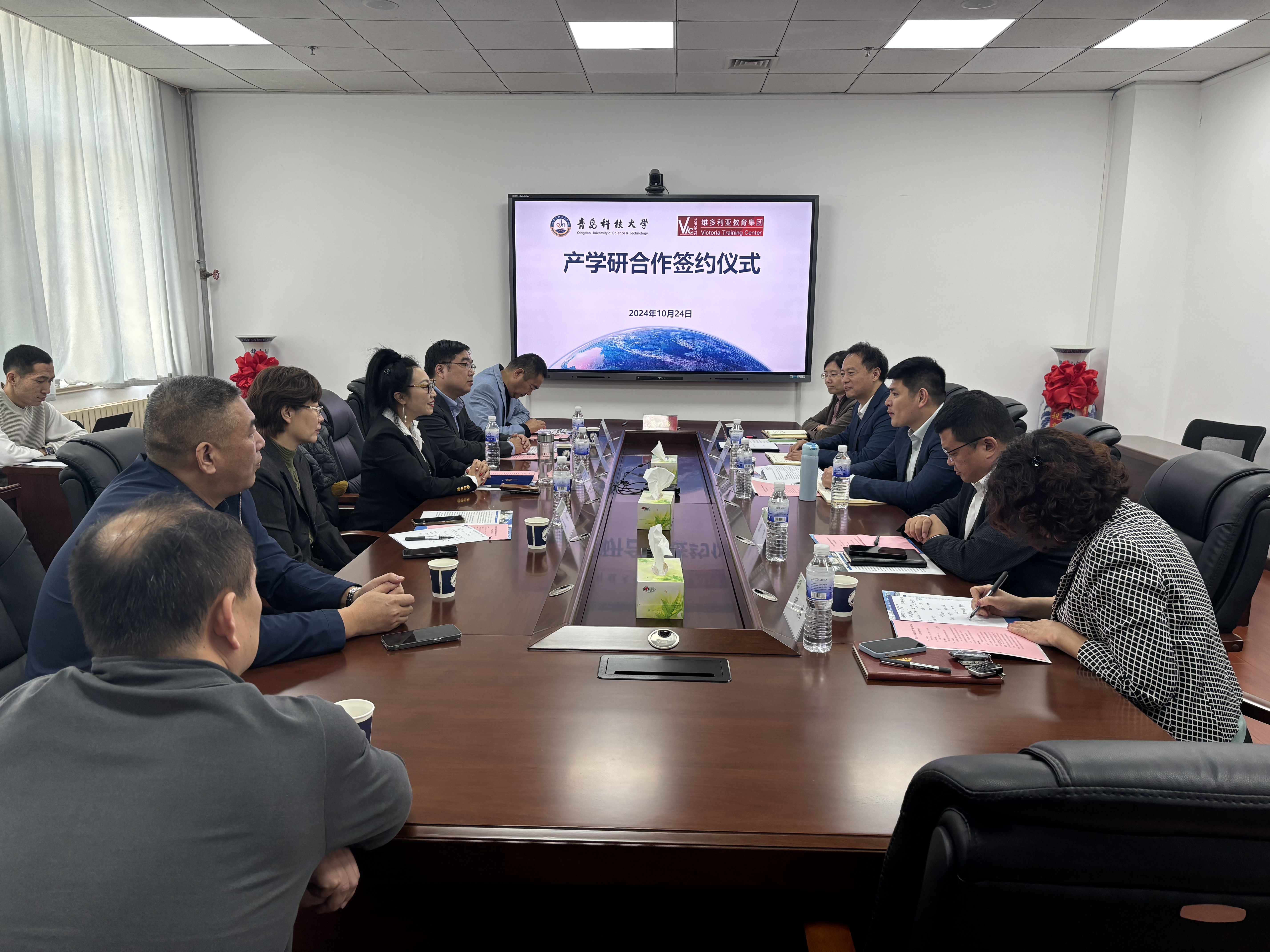 杜军威对Maria一行表示欢迎,他表示,双方在在长期交流和合作的基础上,将继续深化务实合作,未来双方在人工智能领域全方位合作框架下,开展本科专业共建及数智赋能培训中心共建。希望充分发挥维多利亚教育集团国际化资源及前瞻技术优势,与青岛各行业、产业深度融合,助力地方培养更多高素质、实践型人才。Maria对集团情况和当前人工智能产业国际前沿动态进行了介绍,维多利亚集团拥有北美IT国际知名企业一线工程师师资,通过双方的产学研合作,将充分引入优质资源促进国际化人才培养。