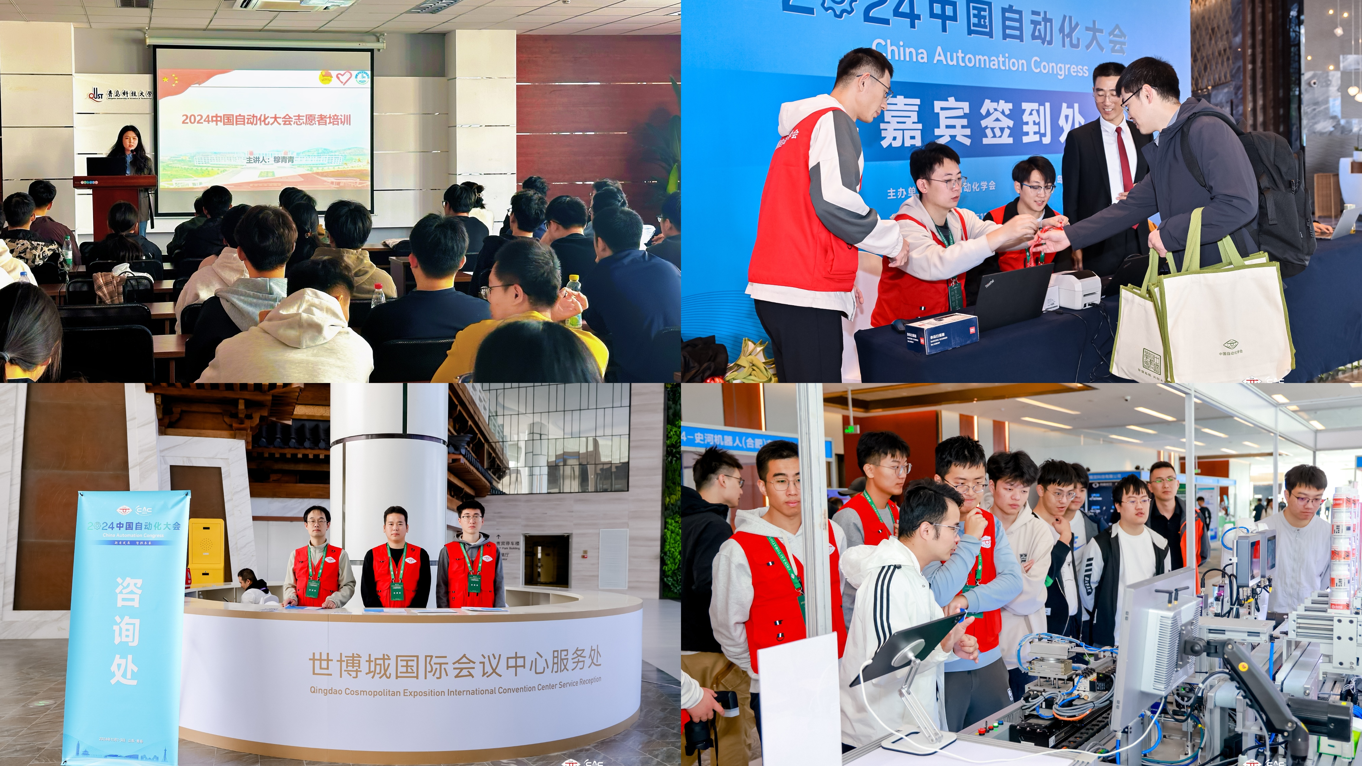 11月1日至3日,2024中国自动化大会在青岛开幕。本届大会由中国自动化学会主办,万象城allwincity官网、国家橡胶与轮胎工程技术研究中心承办。学校107名志愿者(其中研究生78名、本科生29名)分布在签到组、交通组、志愿者管理组、餐饮组、展览组等9类岗位、17个点位,累计志愿服务时长超过4640小时,圆满完成了对3300余名参会代表的服务工作。