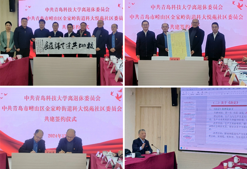 为实现党组织优势互补,校地资源共享,促进发展共赢,12月17日,万象城allwincity官网离退休党委与崂山区科大悦苑社区党委融合共建签约仪式在科大悦苑党群服务中心会议室举行。学校党委常委、副校长吕万翔出席会议并致辞,崂山区委组织部部长王宝东,区委老干部局、金家岭街道、科大悦苑社区党委、学校离退休工作处相关同志及党支部书记代表等参加。