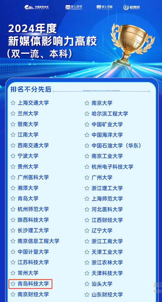 据悉,本届活动组织相关专家进行评审,全面采集并整合了来自多渠道的海量数据信息,包括掌上高考高校招生数据库、掌上考研高校招生数据库、高招智能问答系统、中教智媒内容平台所汇集的庞大信息源,以及第三方平台提供的相关数据等。“2024年度新媒体影响力本科高校”是通过综合评估各单位及个人利用新媒体传播渠道、数字化手段等,在高校校园文化建设、对内对外品牌形象塑造方面的创新意识和探索精神,以及在高校品牌宣传和影响力方面的贡献程度所得。